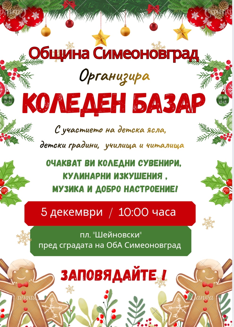 По време на базара ще имате възможност да откриете уникални подаръци, да подкрепите местни творци и да се потопите в магията на предстоящите празници.