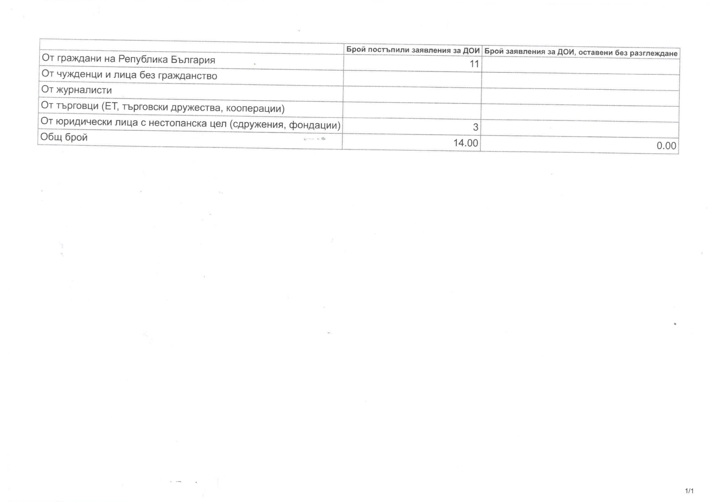 Отчет за постъпилите заявления за ДОИ за 2020 година