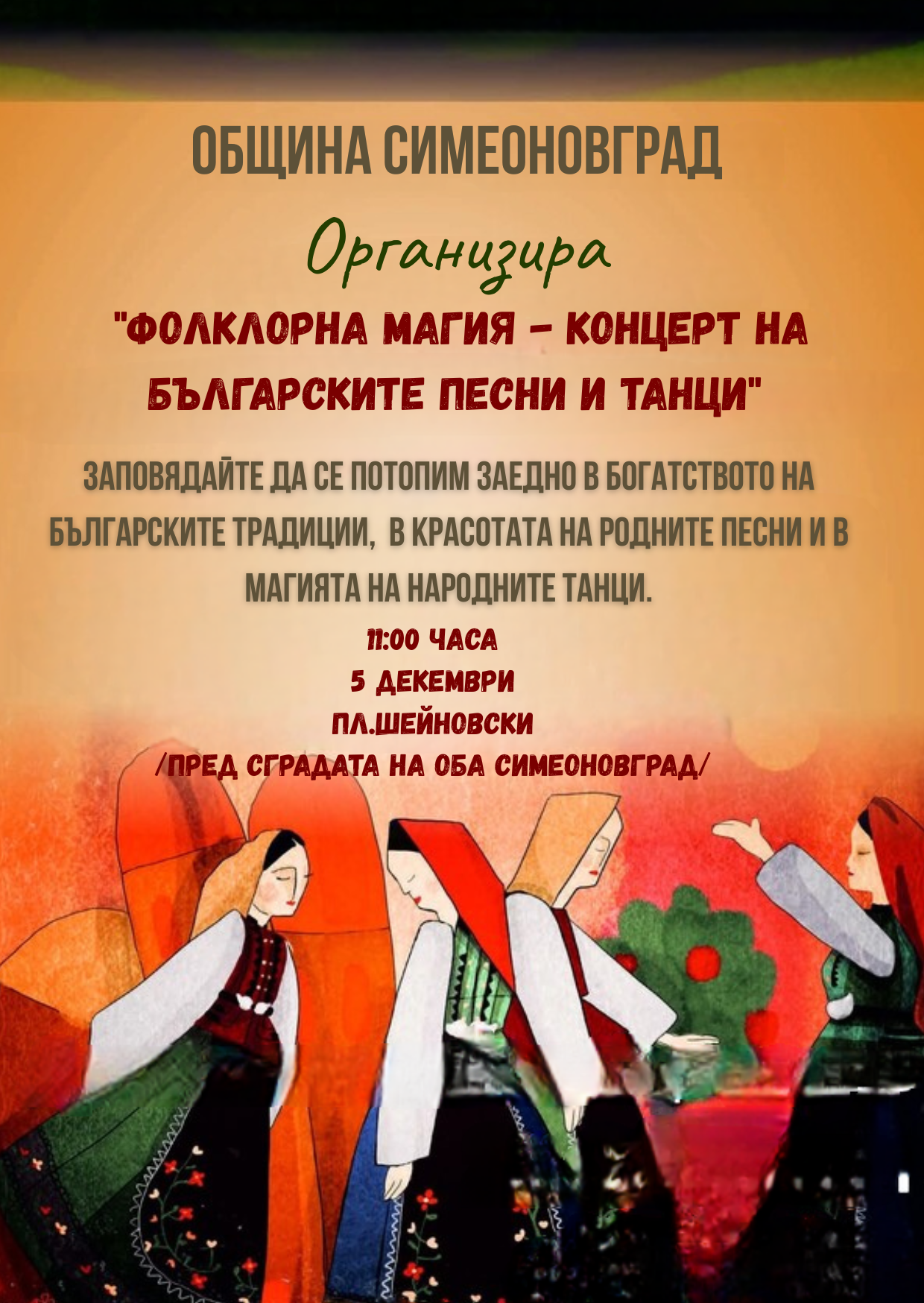 Съдържание на новината: 🎶 Фолклорна магия – Концерт на българските песни и танци“ 🎶